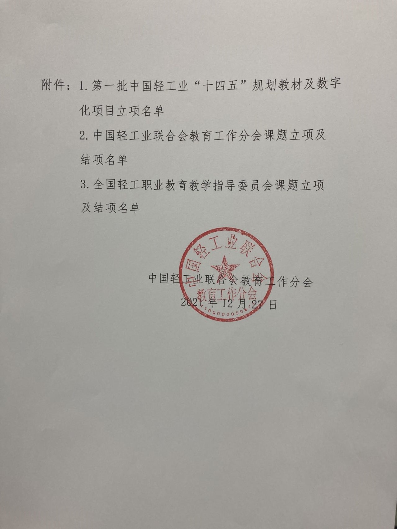 关于中国轻工业职业教育教材课题等项目审定结果的公示