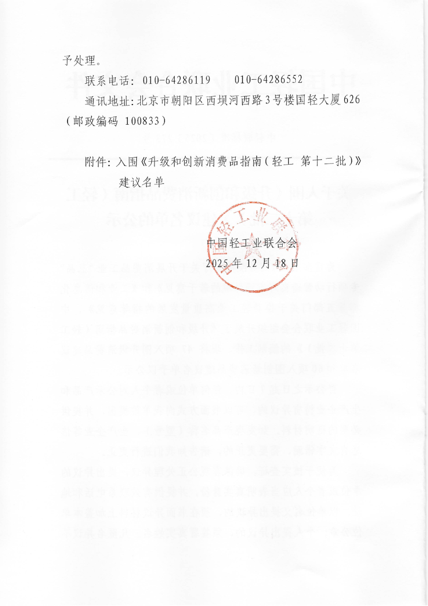 关于入围《升级和创新消费品指南(轻工 第十二批)》建议名单的公示