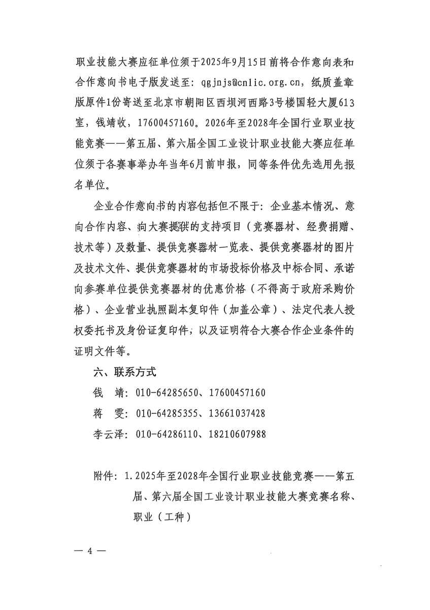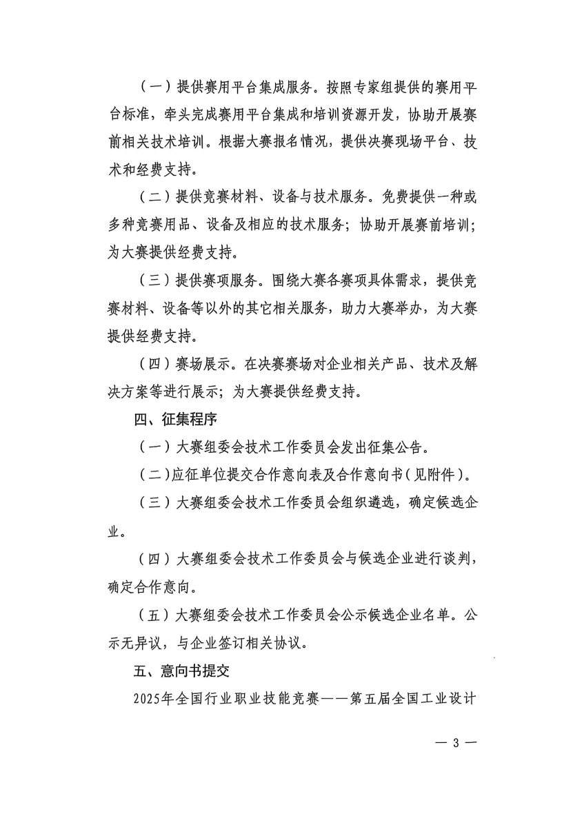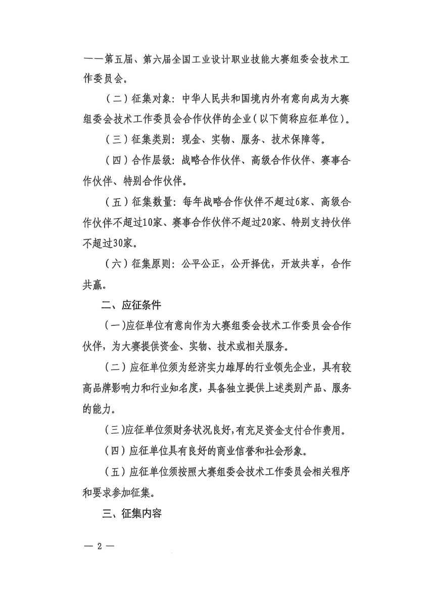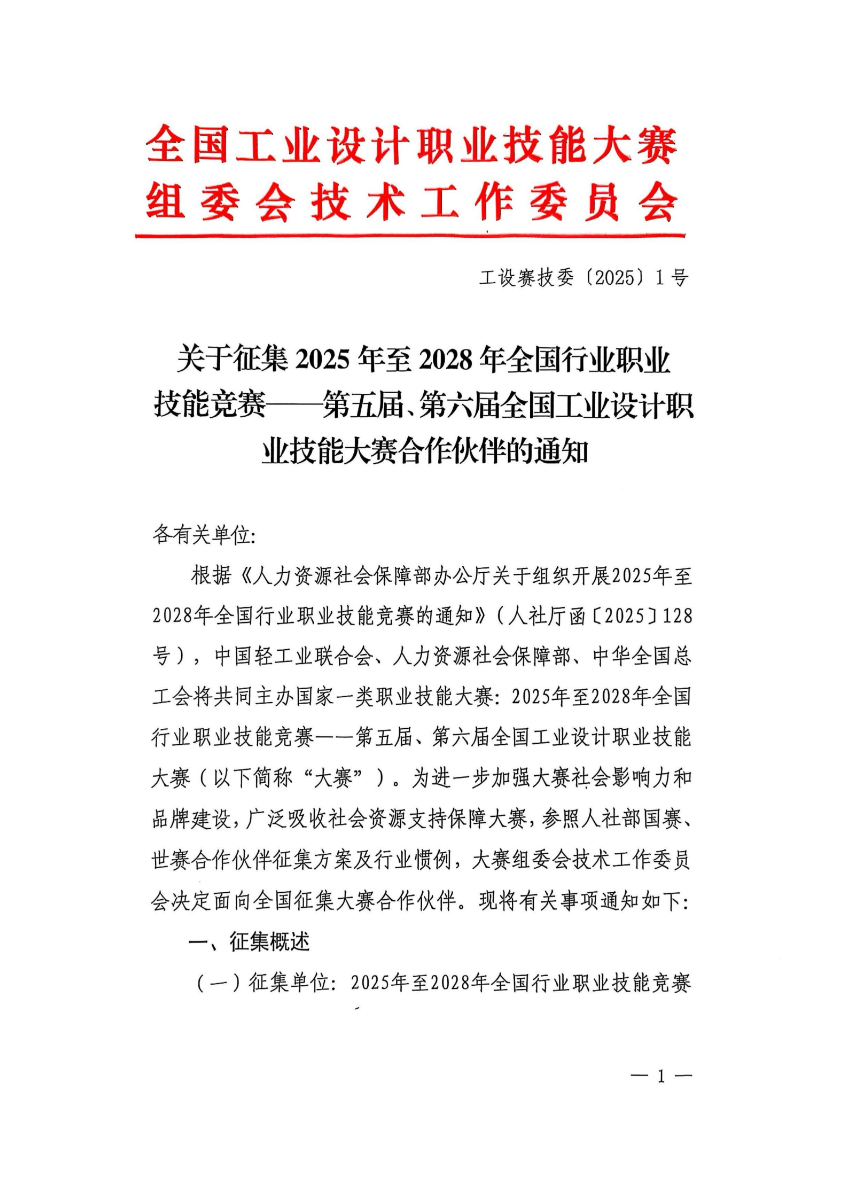 关于征集2025年至2028年第五届、第六届全国工业设计职业技能大赛合作伙伴的通知