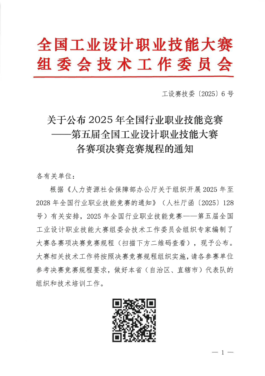 关于公布2025年第五届全国工业设计职业技能大赛决赛竞赛规程的通知