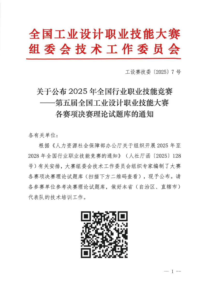 关于公布2025年第五届全国工业设计职业技能大赛决赛理论试题库的通知