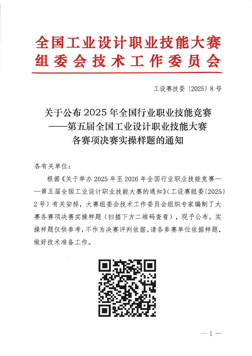 关于公布2025年第五届全国工业设计职业技能大赛决赛实操样题的通知