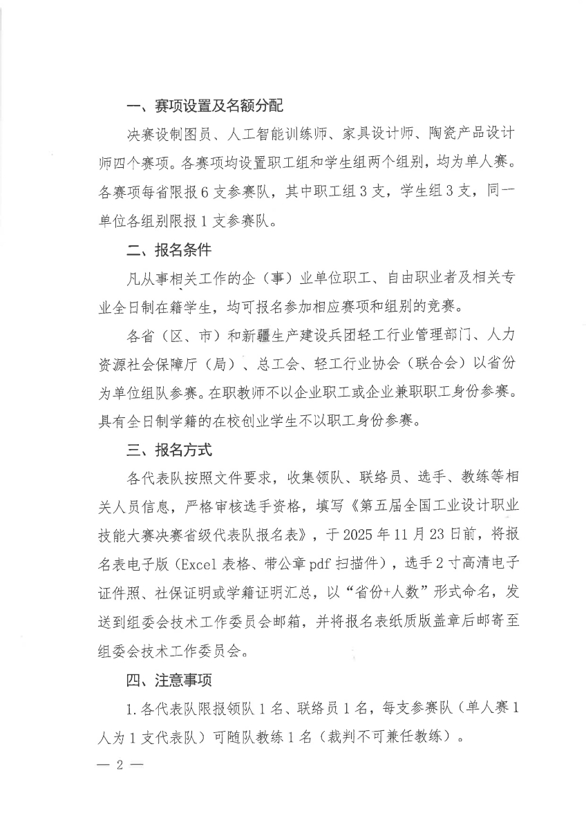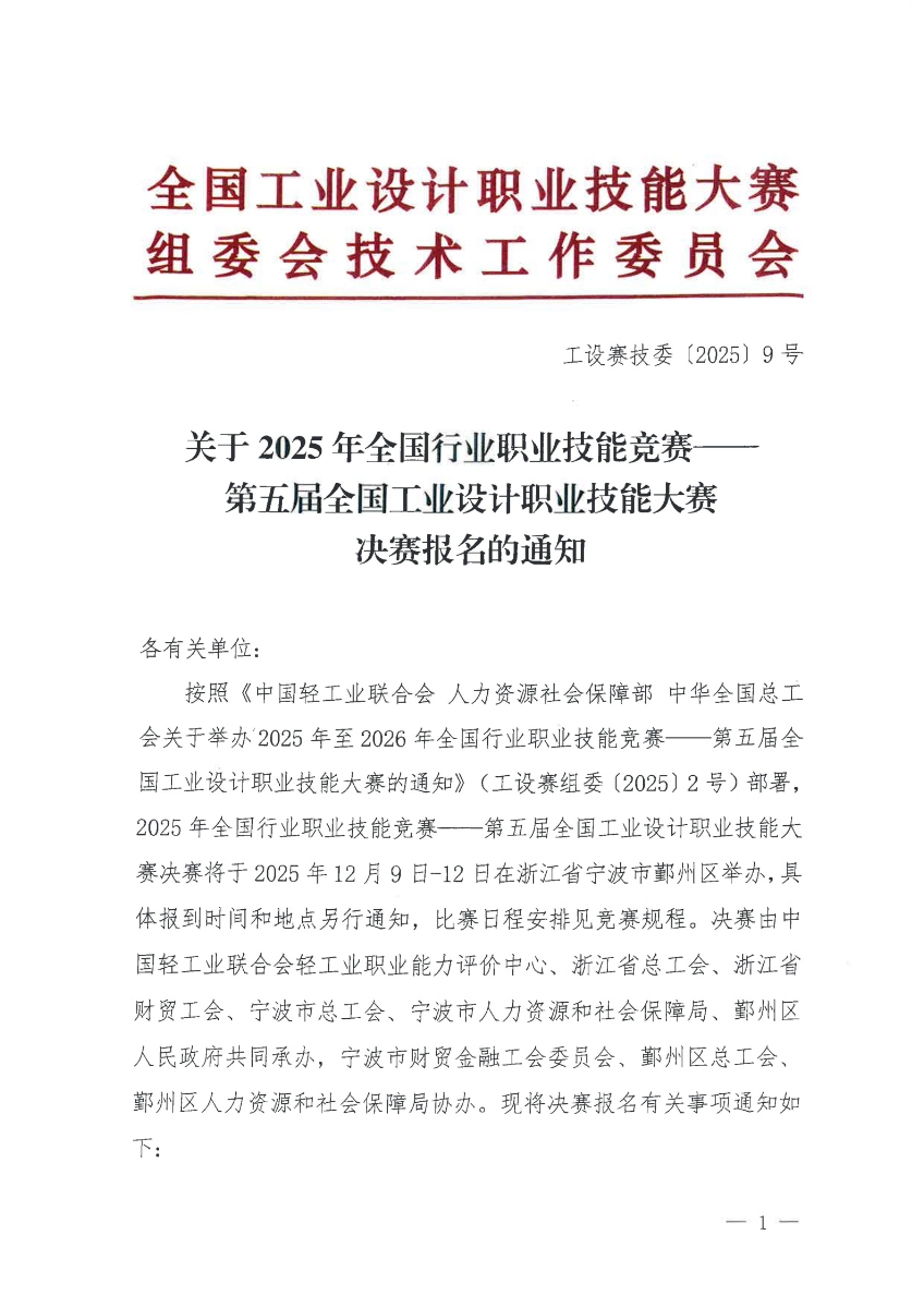 关于2025年全国行业职业技能竞赛— 第五届全国工业设计职业技能大赛 决赛报名的通知