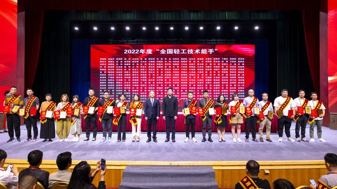 大会为2022年轻工行业“全国五一劳动奖章”获得者举行了颁奖仪式;为获得2022年“全国轻工技术能手”荣誉称号的优秀选手和全国轻工第二届互联网营销师获奖选手进行表彰。