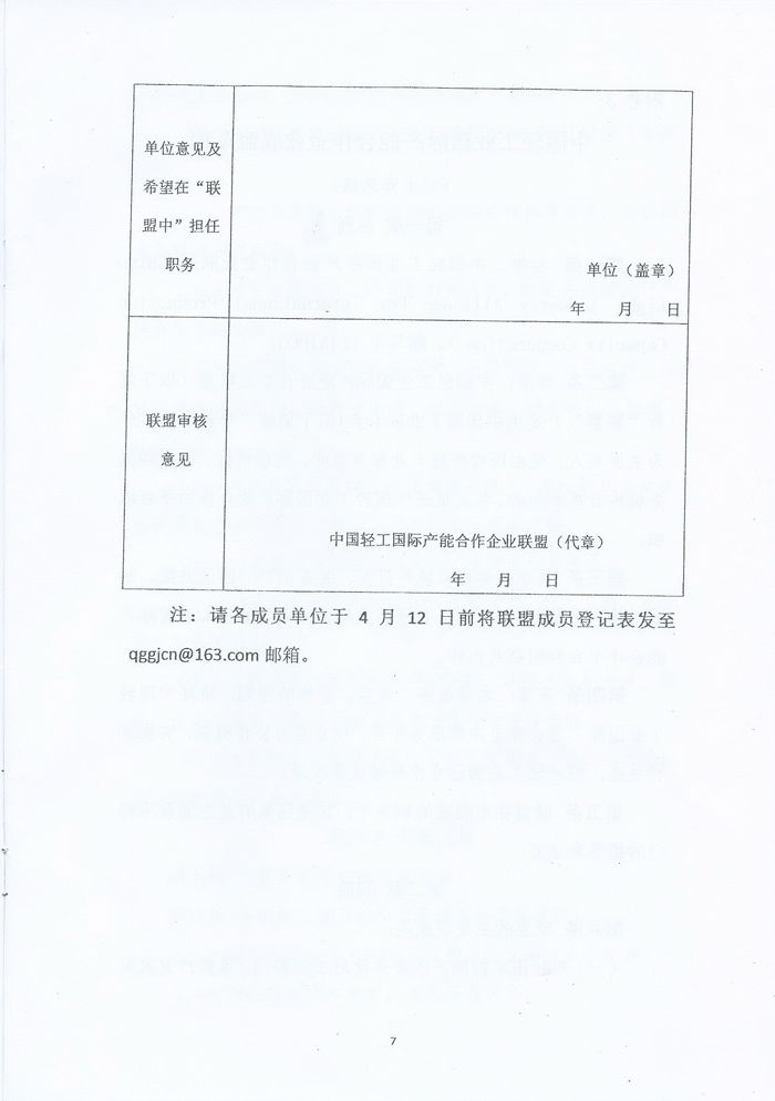关于共同发起成立“中国轻工国际产能合作企业联盟”的函