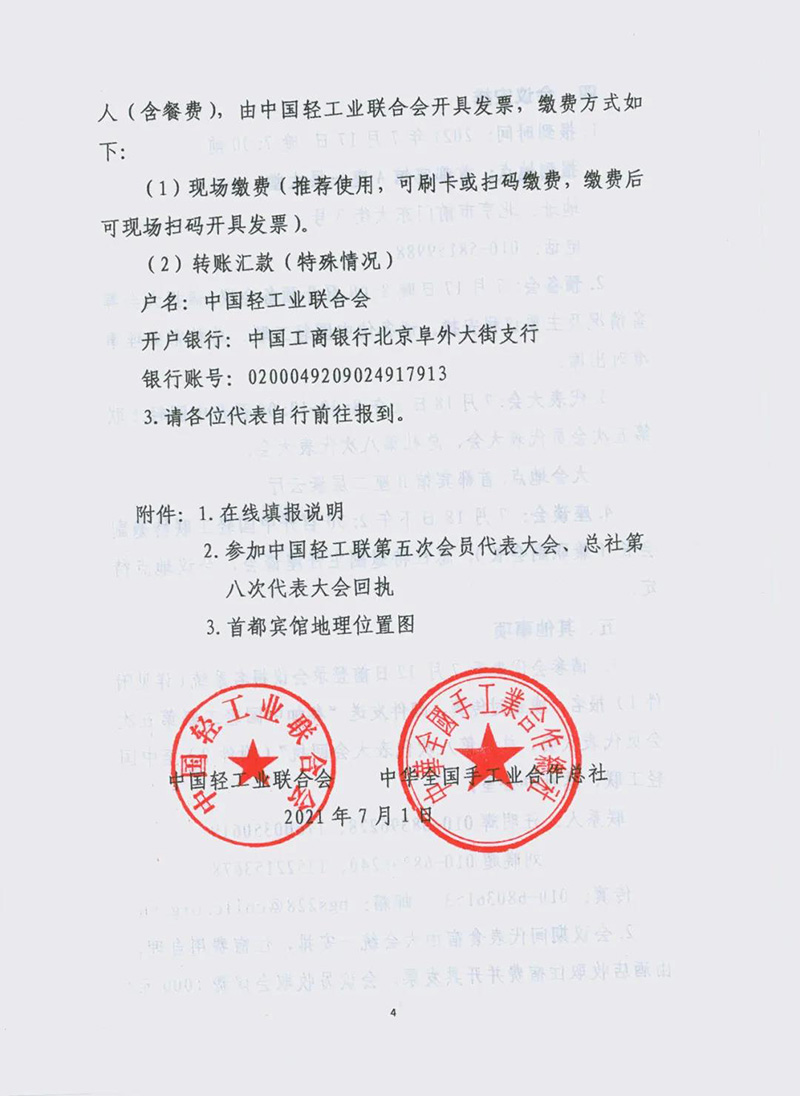 关于召开中国轻工业联合会第五次会员代表大会、中华全国手工业合作总社第八次代表大会的通知